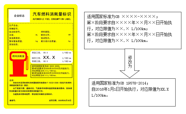 本次文字调整仅适用于新认证乘用车,从2016年1月1日起实施。在生产乘用车车型及轻型商用车辆燃料消耗量标识不变。